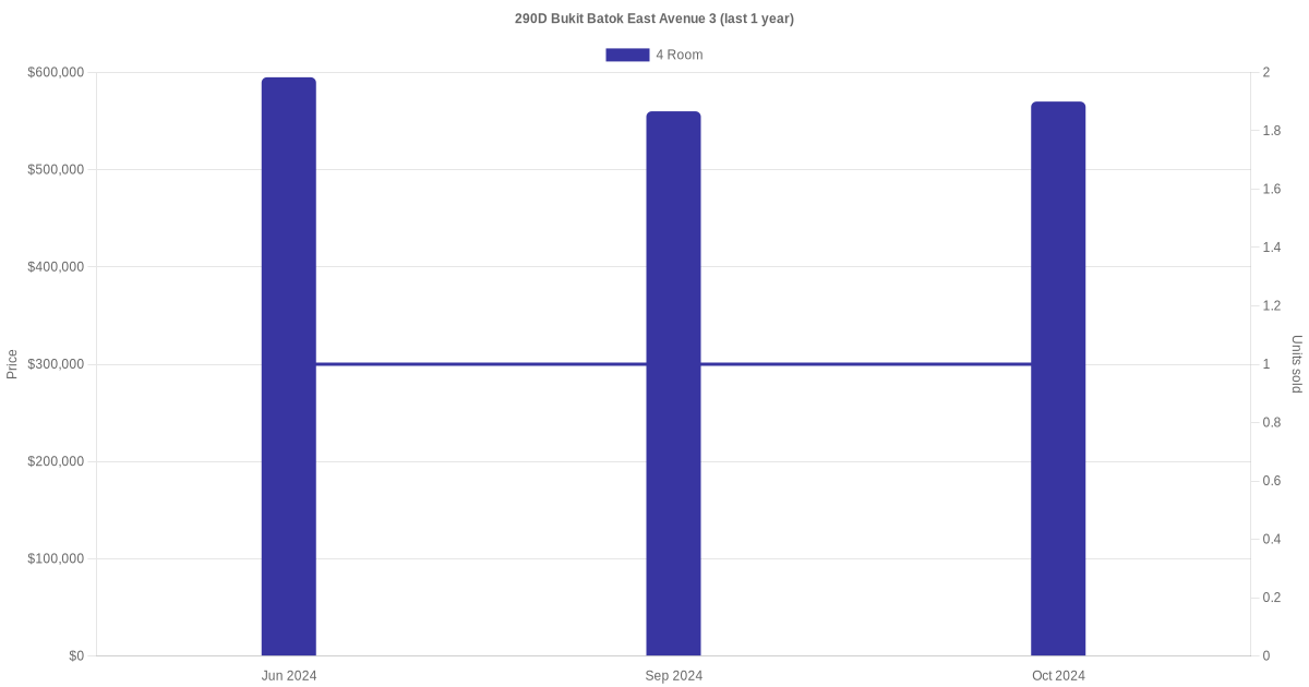 Below is a quick summary of the resale transactions volume and average price trends for the 4 room and 5 room units at 290D Bukit Batok East Avenue 3.