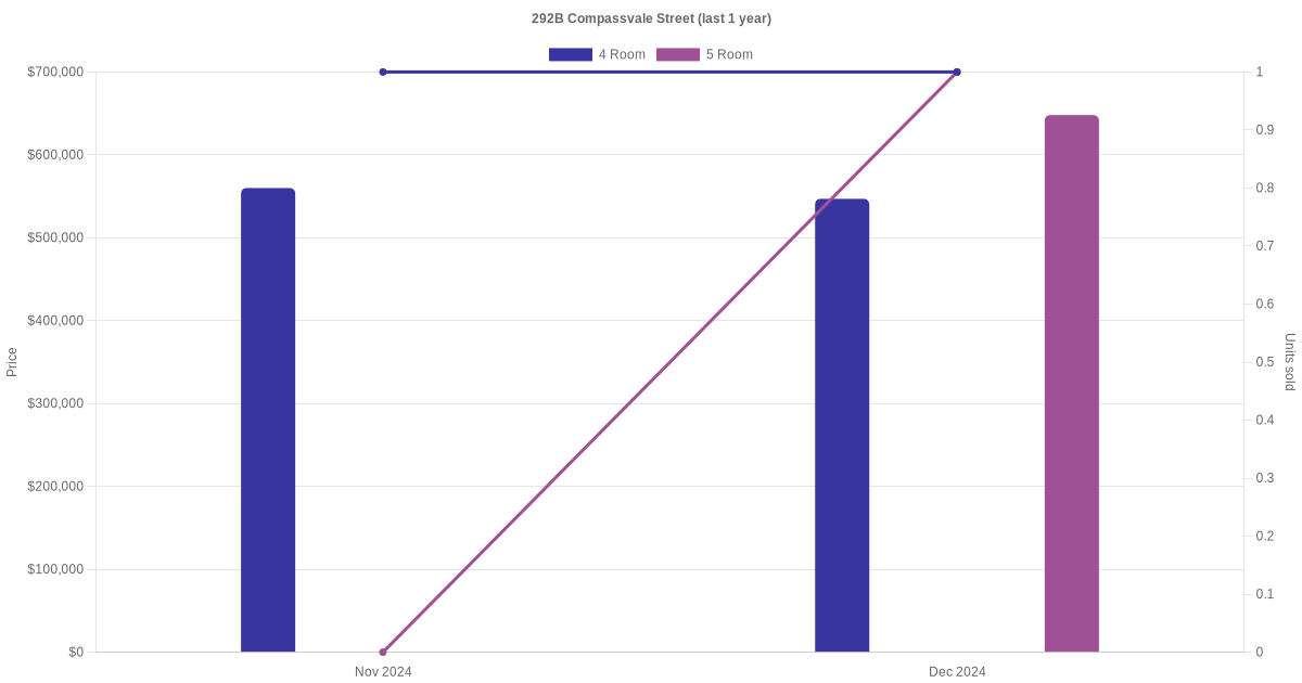 Below is a quick summary of the resale transactions volume and average price trends for the 4 room and 5 room units at 292B Compassvale Street.