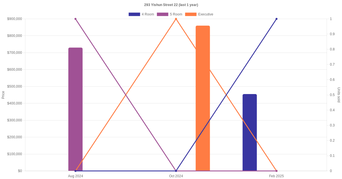 There were a total of 4 resale transactions in the last 3 years for units in block 293 Yishun Street 22, with the latest one recorded in Feb 2025.