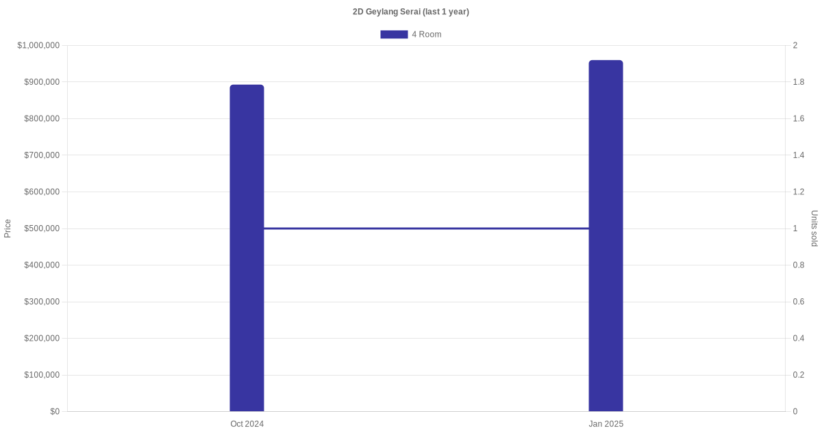 | Feb 2025 | $4,350 | 4 Room | Blk 2D Geylang Serai 4 Room | Geylang |