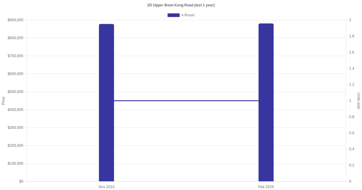 There were a total of 8 resale transactions in the last 3 years for units in block 2D Upper Boon Keng Road, with the latest one recorded in Oct 2025.