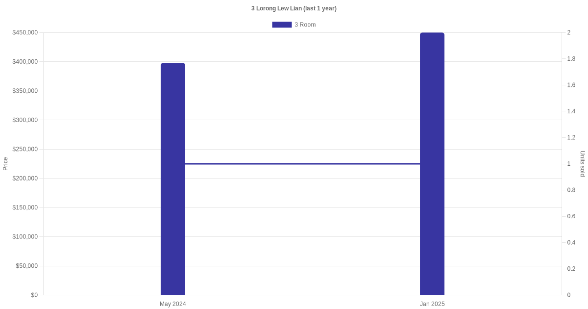 There were a total of 5 resale transactions in the last 3 years for units in block 3 Lorong Lew Lian, with the latest one recorded in May 2025.