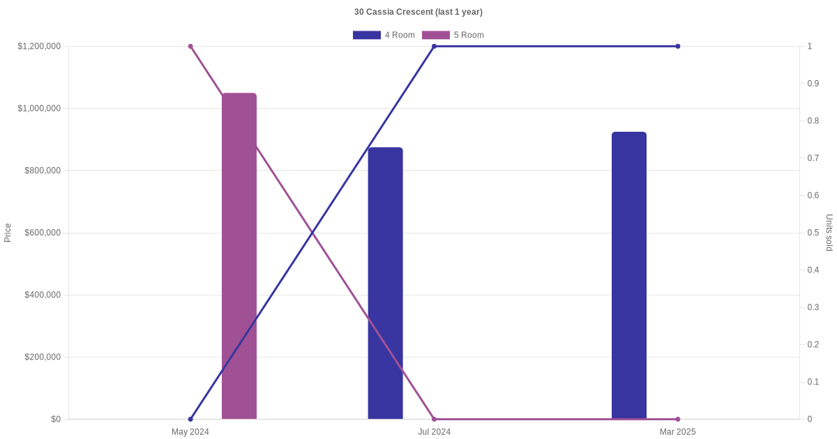 Here's a summary of the rental transactions and price trends for the 4 room and 5 room units at 30 Cassia Crescent.