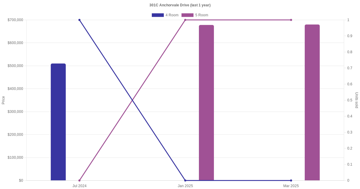 Here's a summary of the rental transactions and price trends for the 4 room and 5 room units at 301C Anchorvale Drive.