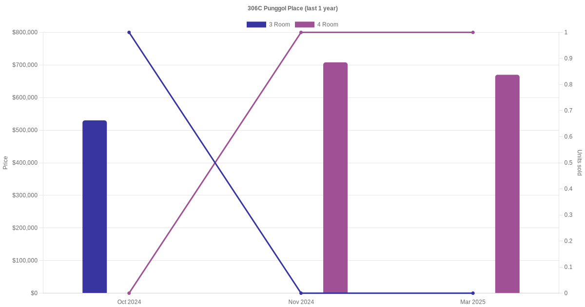 There were a total of 7 resale transactions in the last 3 years for units in block 306C Punggol Place, with the latest one recorded in Sep 2025.