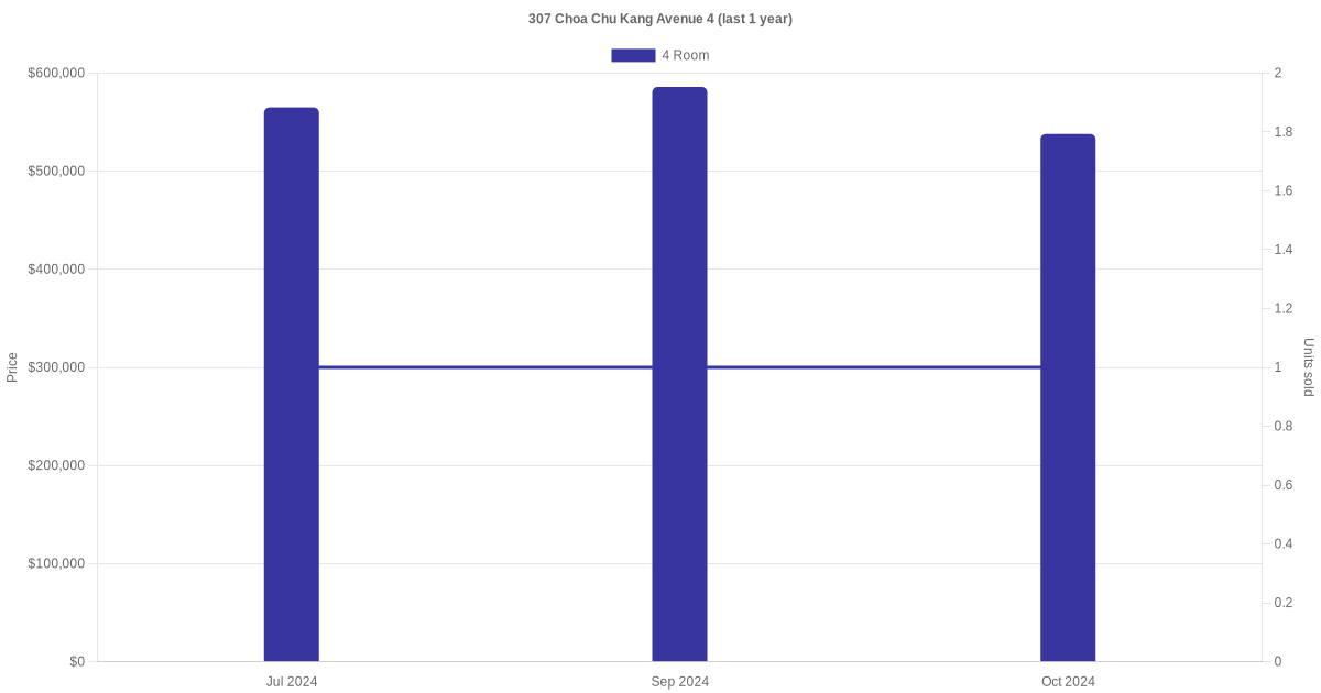 There were a total of 4 resale transactions in the last 3 years for units in block 307 Choa Chu Kang Avenue 4, with the latest one recorded in Jun 2025.