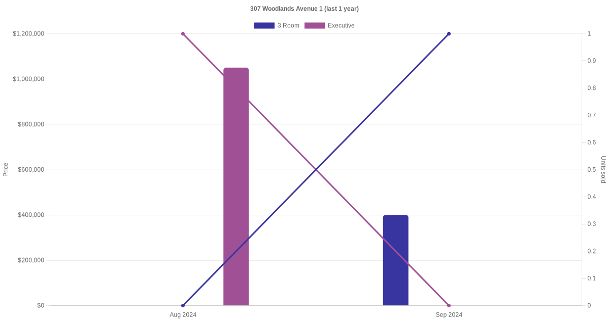 Here's a summary of the rental transactions and price trends for the 3 room, 4 room and executive units at 307 Woodlands Avenue 1.