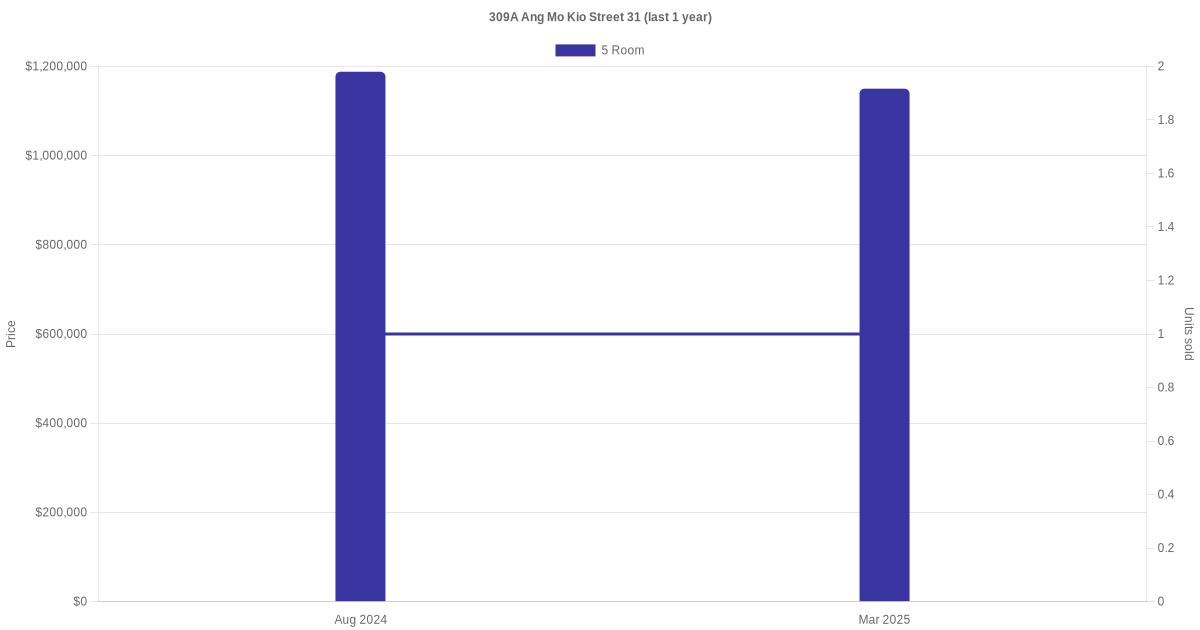 | Sep 2025 | $3,800 | 5 Room | Blk 309A Ang Mo Kio Street 31 5 Room | Ang Mo Kio |