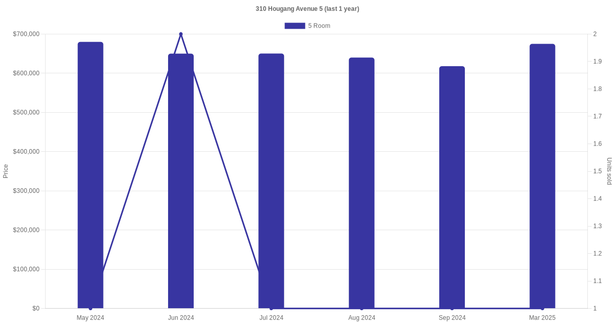 Below is a quick summary of the resale transactions volume and average price trends for the 5 room units at 310 Hougang Avenue 5.