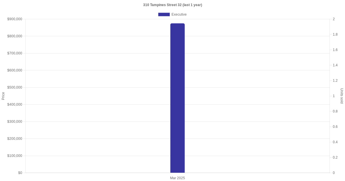 | Jan 2025 | $4,200 | Executive | Blk 310 Tampines Street 32 Executive | Tampines |