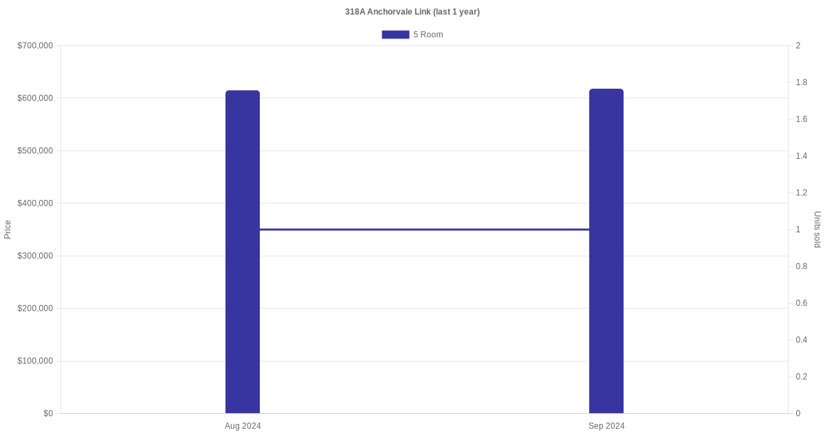 Below is a quick summary of the resale transactions volume and average price trends for the 4 room and 5 room units at 318A Anchorvale Link.