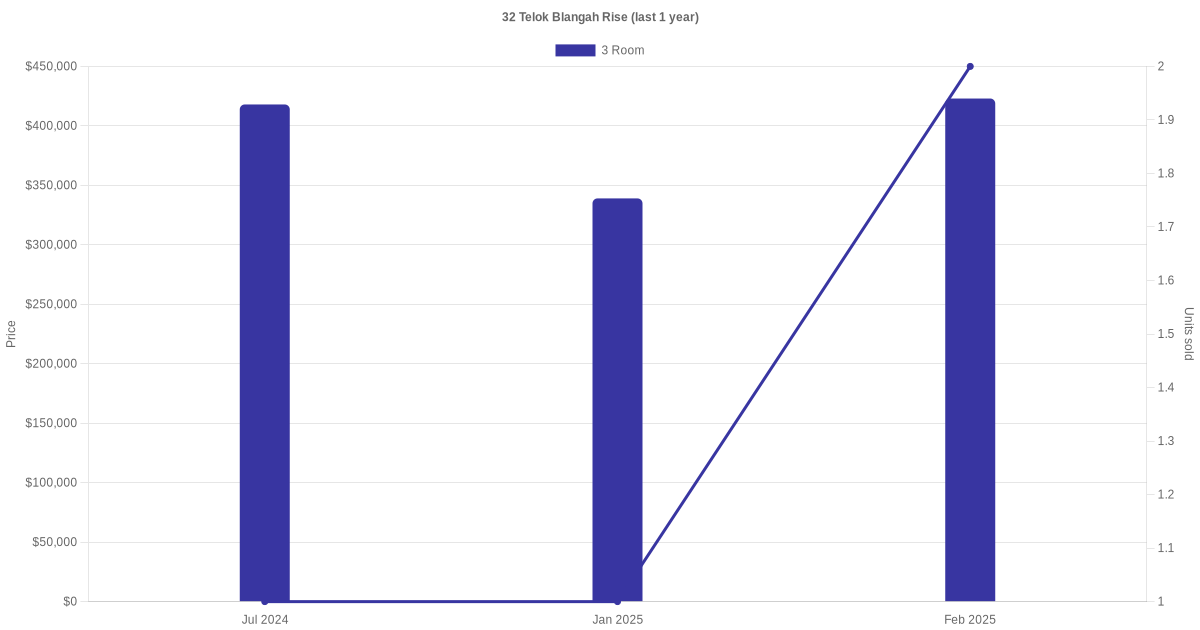 | Mar 2025 | $2,300 | 3 Room | Blk 32 Telok Blangah Rise 3 Room | Bukit Merah |