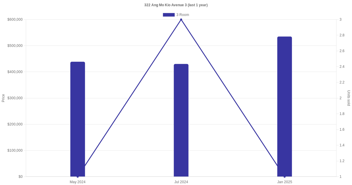 | Oct 2024 | $2,500 | 3 Room | Blk 322 Ang Mo Kio Avenue 3 3 Room | Ang Mo Kio |