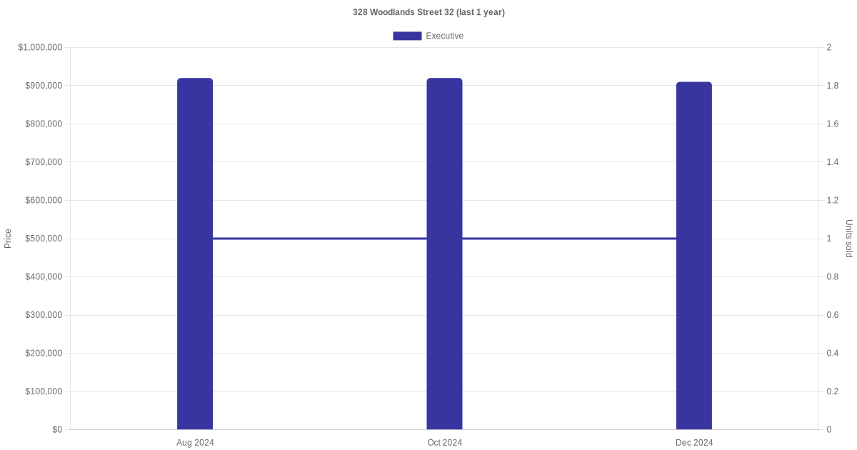 | Dec 2025 | $950,000 | $5,828 | Executive | Blk 328 Woodlands Street 32 Executive / 163 sqm | 01 to 03 | 163 sqm | Apartment | 1994 |