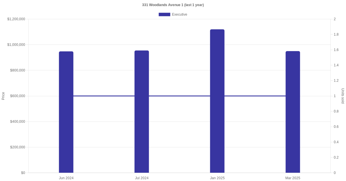 | Mar 2025 | $950,000 | $4,948 | Executive | Blk 331 Woodlands Avenue 1 Executive / 192 sqm | 01 to 03 | 192 sqm | Apartment | 1994 |