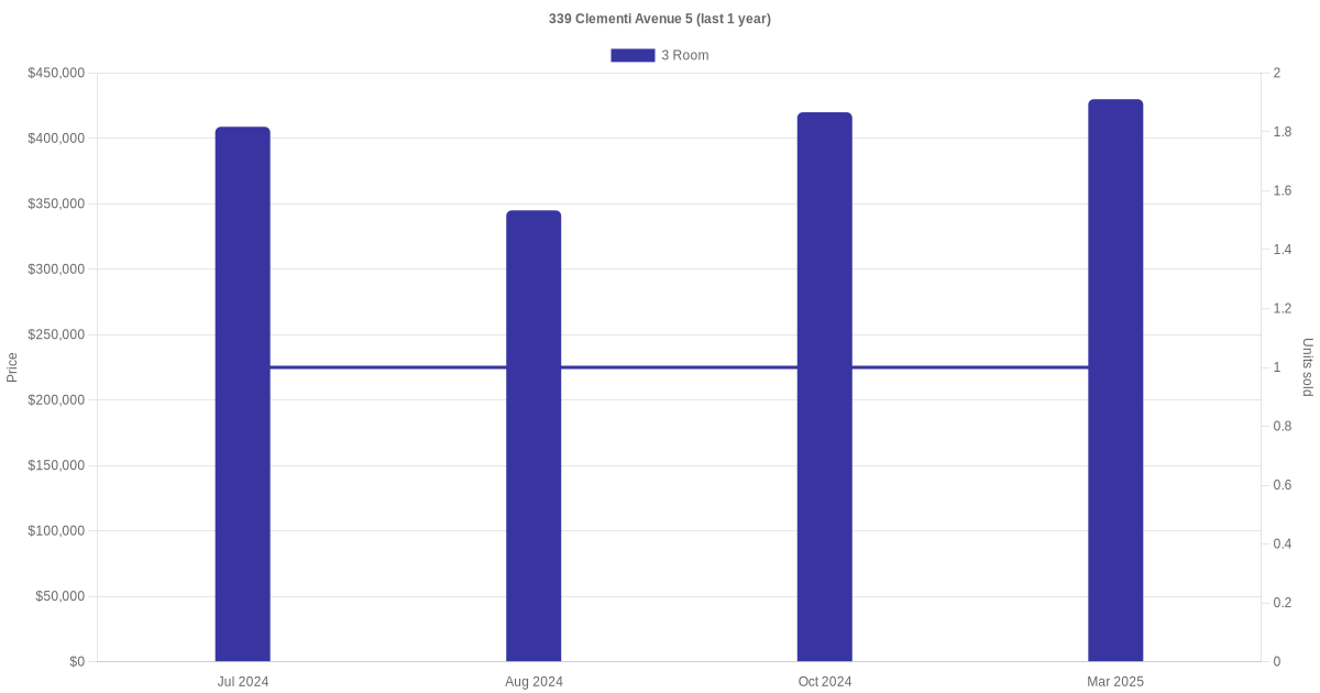 | Nov 2025 | $2,800 | 3 Room | Blk 339 Clementi Avenue 5 3 Room | Clementi |
