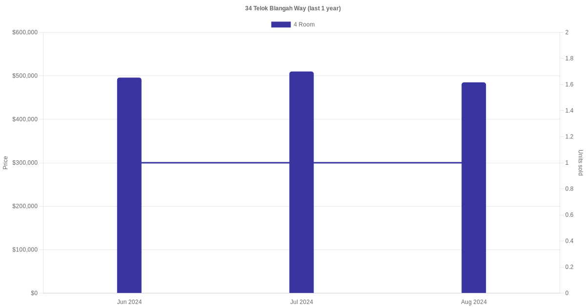 Below is a quick summary of the resale transactions volume and average price trends for the 4 room units at 34 Telok Blangah Way.