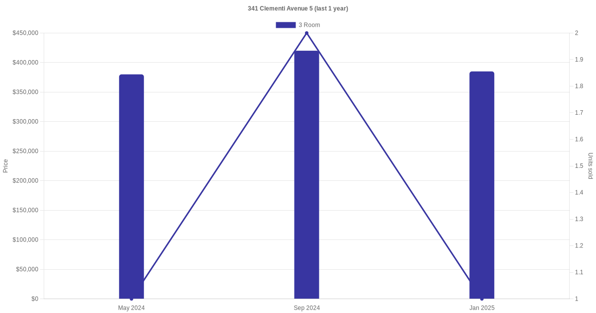 | Sep 2025 | $3,000 | 3 Room | Blk 341 Clementi Avenue 5 3 Room | Clementi |