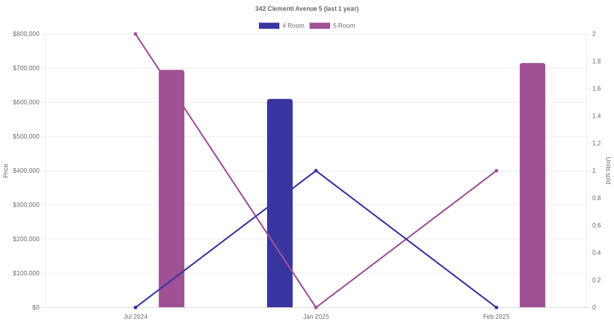 Here's a summary of the rental transactions and price trends for the 4 room and 5 room units at 342 Clementi Avenue 5.