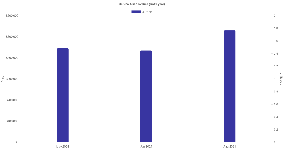 Below is a quick summary of the resale transactions volume and average price trends for the 4 room units at 35 Chai Chee Avenue.