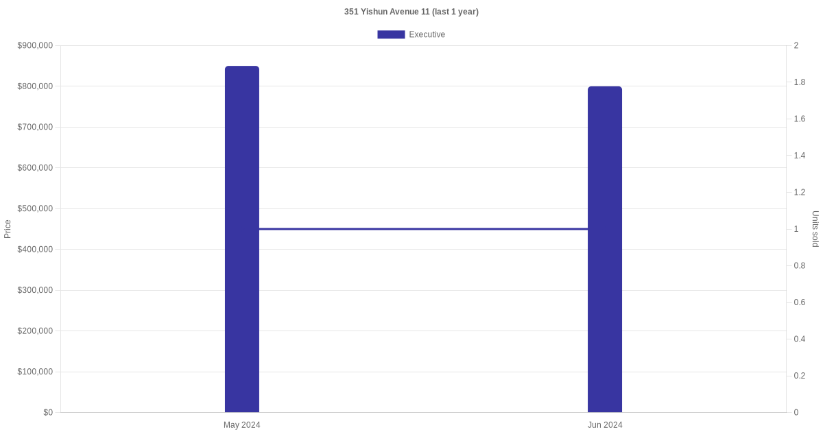 Below is a quick summary of the resale transactions volume and average price trends for the executive units at 351 Yishun Avenue 11.