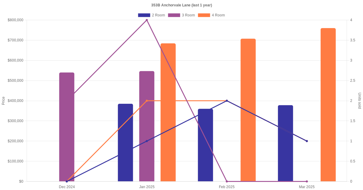 Here's a summary of the rental transactions and price trends for the 2 room, 3 room and 4 room units at 353B Anchorvale Lane.