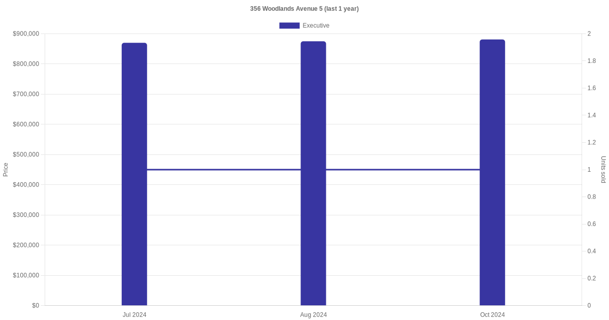 Here's a summary of the rental transactions and price trends for the executive units at 356 Woodlands Avenue 5.