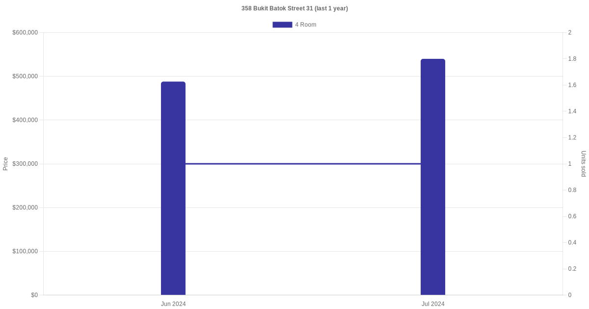 Below is a quick summary of the resale transactions volume and average price trends for the 4 room units at 358 Bukit Batok Street 31.