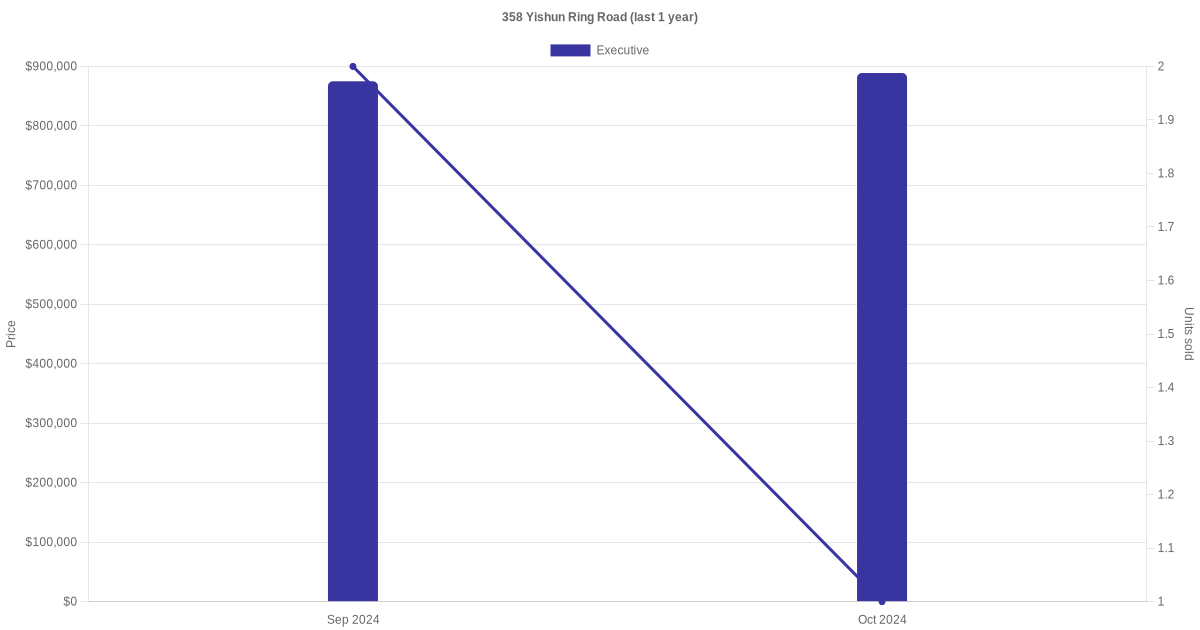 Below is a quick summary of the resale transactions volume and average price trends for the executive units at 358 Yishun Ring Road.