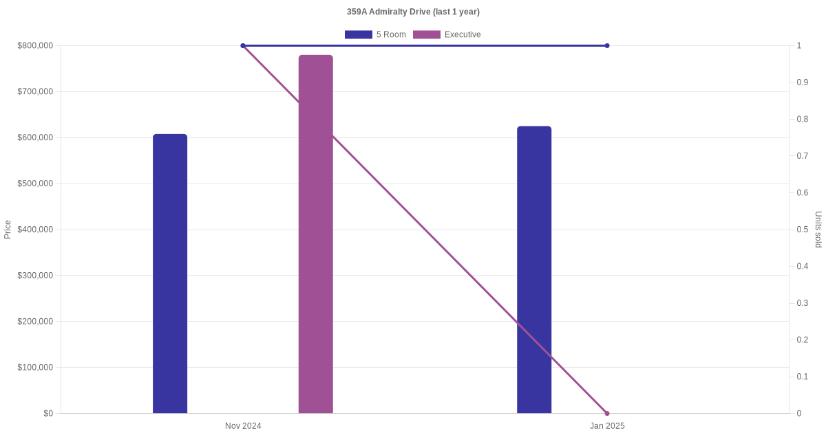 There were a total of 8 resale transactions in the last 3 years for units in block 359A Admiralty Drive, with the latest one recorded in Jan 2025.