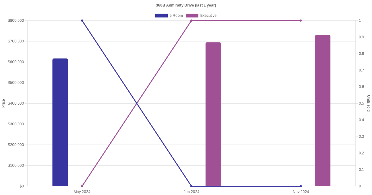 Here's a summary of the rental transactions and price trends for the 5 room and executive units at 360B Admiralty Drive.
