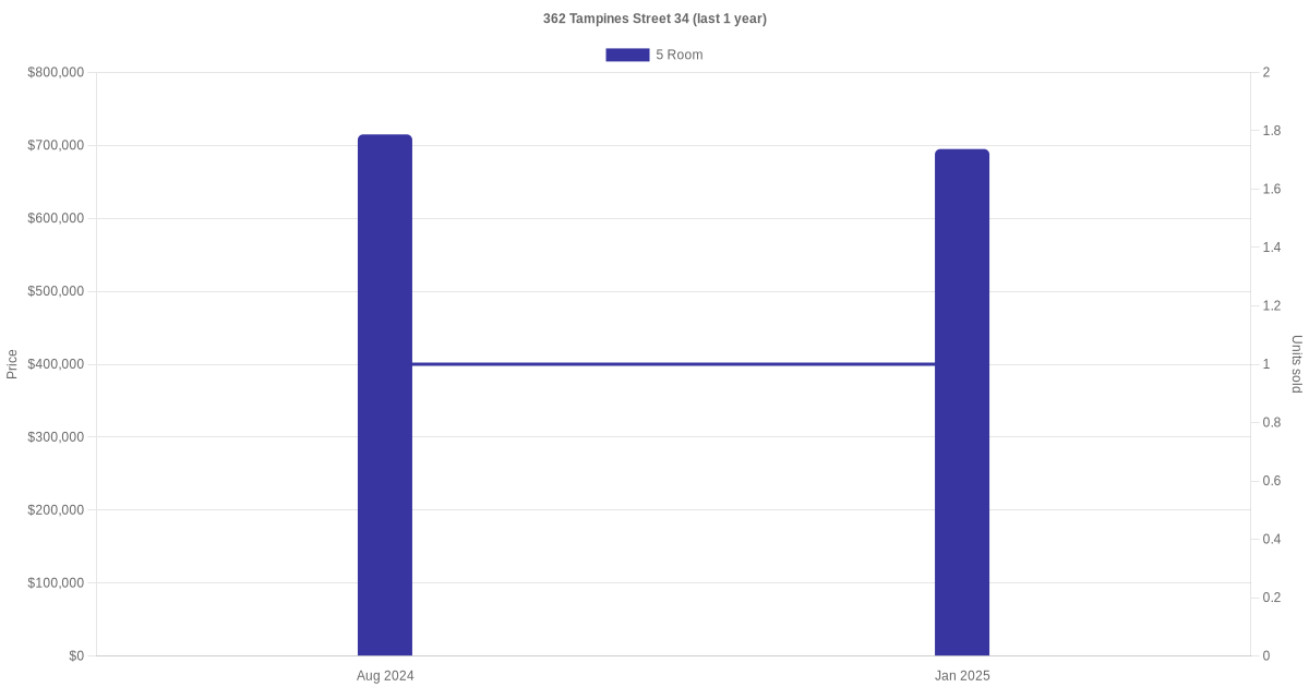 There were a total of 5 resale transactions in the last 3 years for units in block 362 Tampines Street 34, with the latest one recorded in Nov 2025.