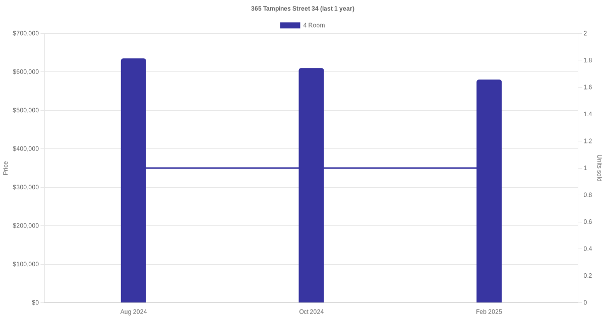There were a total of 8 resale transactions in the last 3 years for units in block 365 Tampines Street 34, with the latest one recorded in Dec 2025.