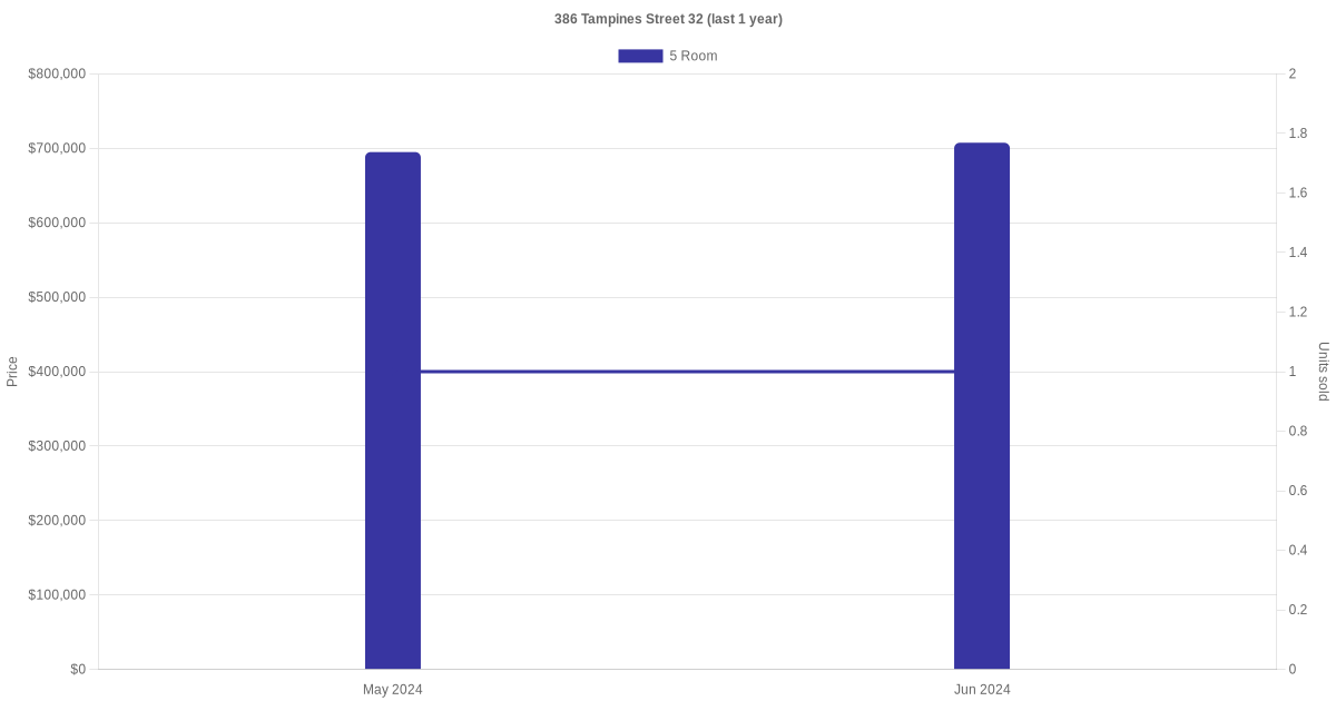 There were a total of 4 resale transactions in the last 3 years for units in block 386 Tampines Street 32, with the latest one recorded in Jun 2024.