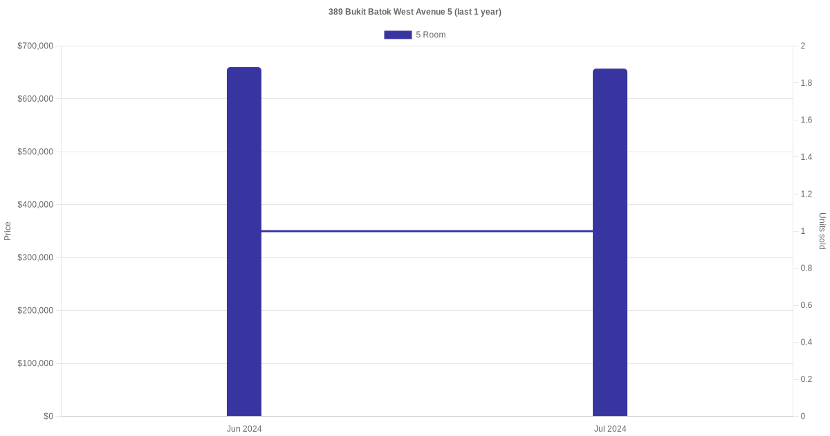 Below is a quick summary of the resale transactions volume and average price trends for the 5 room units at 389 Bukit Batok West Avenue 5.