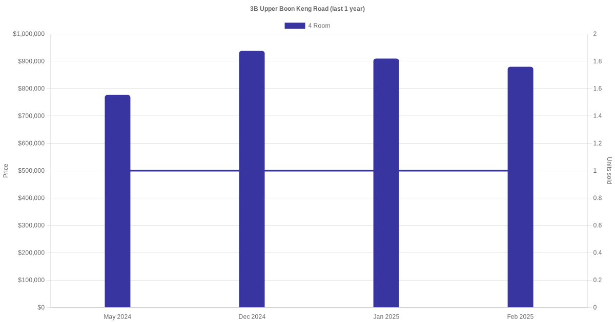 There were a total of 14 resale transactions in the last 3 years for units in block 3B Upper Boon Keng Road, with the latest one recorded in Jan 2026.
