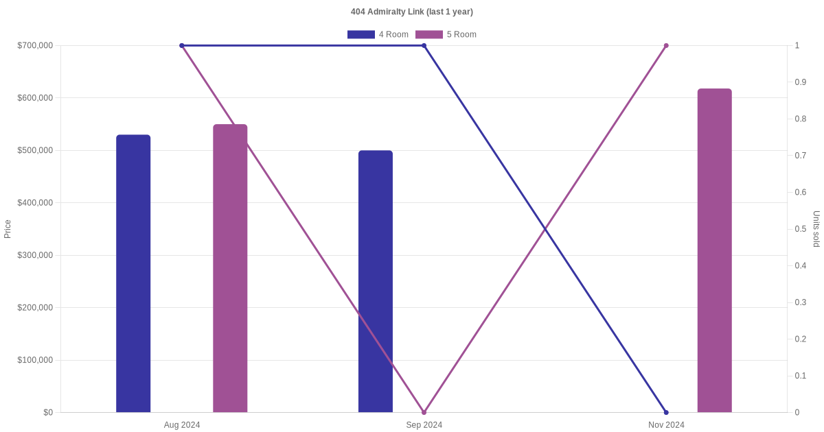 Here's a summary of the rental transactions and price trends for the 4 room and 5 room units at 404 Admiralty Link.