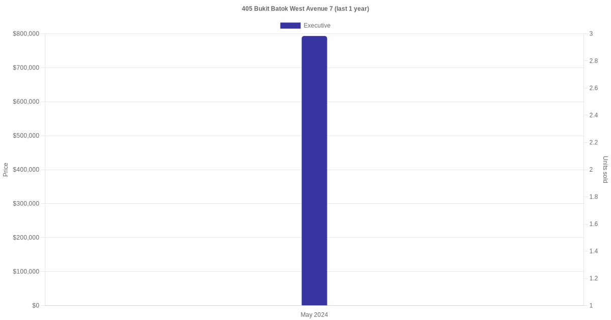 Below is a quick summary of the resale transactions volume and average price trends for the executive units at 405 Bukit Batok West Avenue 7.