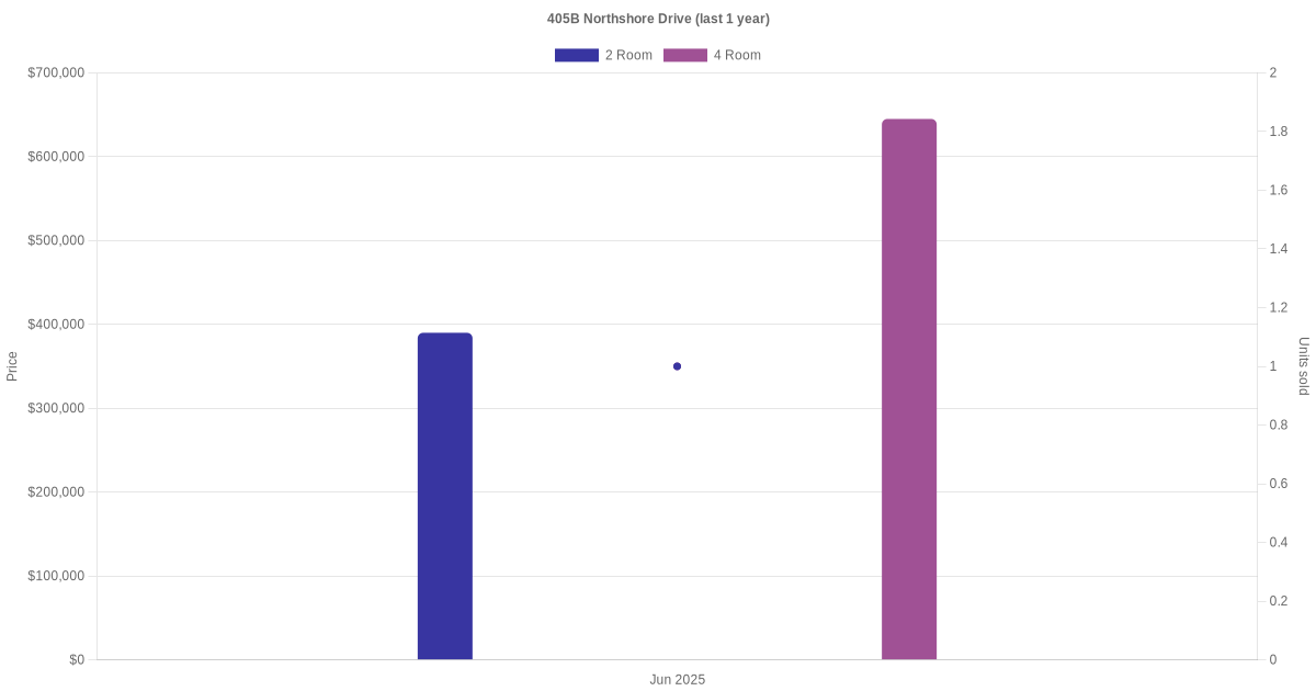 Here's a summary of the rental transactions and price trends for the 2 room and 4 room units at 405B Northshore Drive.