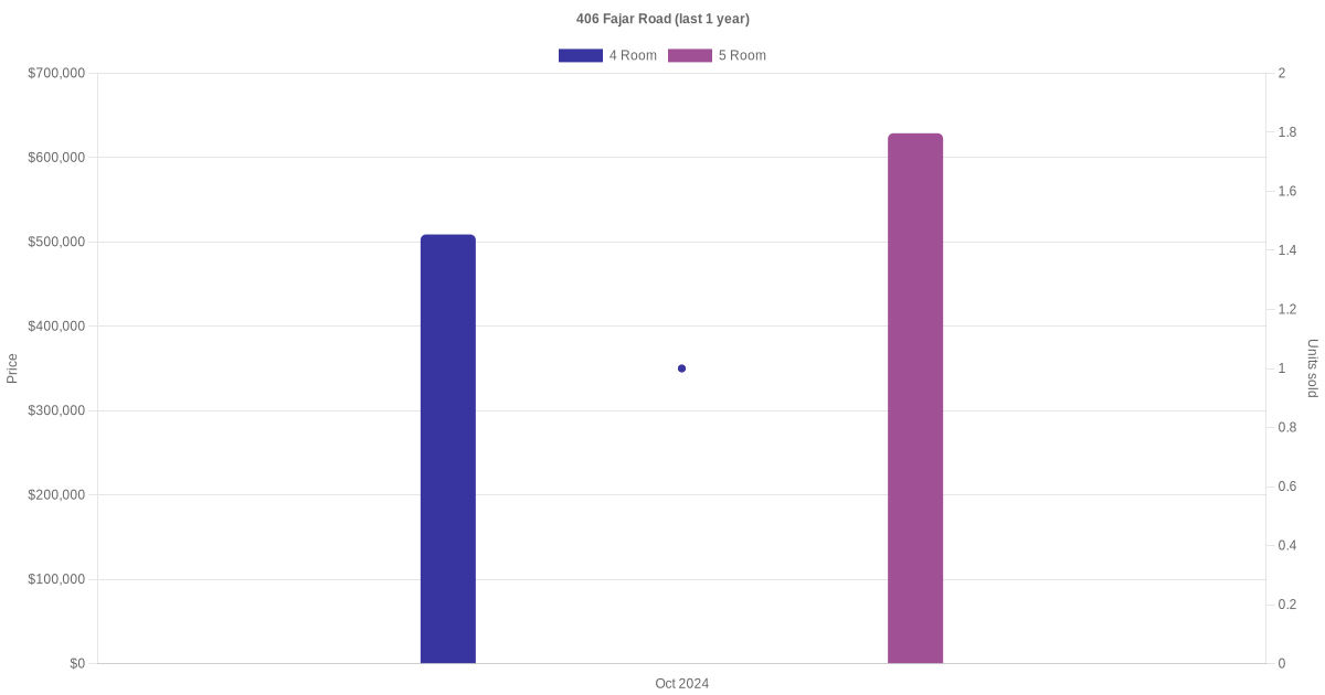 Below is a quick summary of the resale transactions volume and average price trends for the 4 room and 5 room units at 406 Fajar Road.