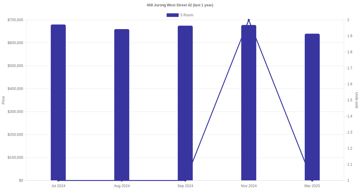| Jan 2025 | $3,800 | 5 Room | Blk 408 Jurong West Street 42 5 Room | Jurong West |