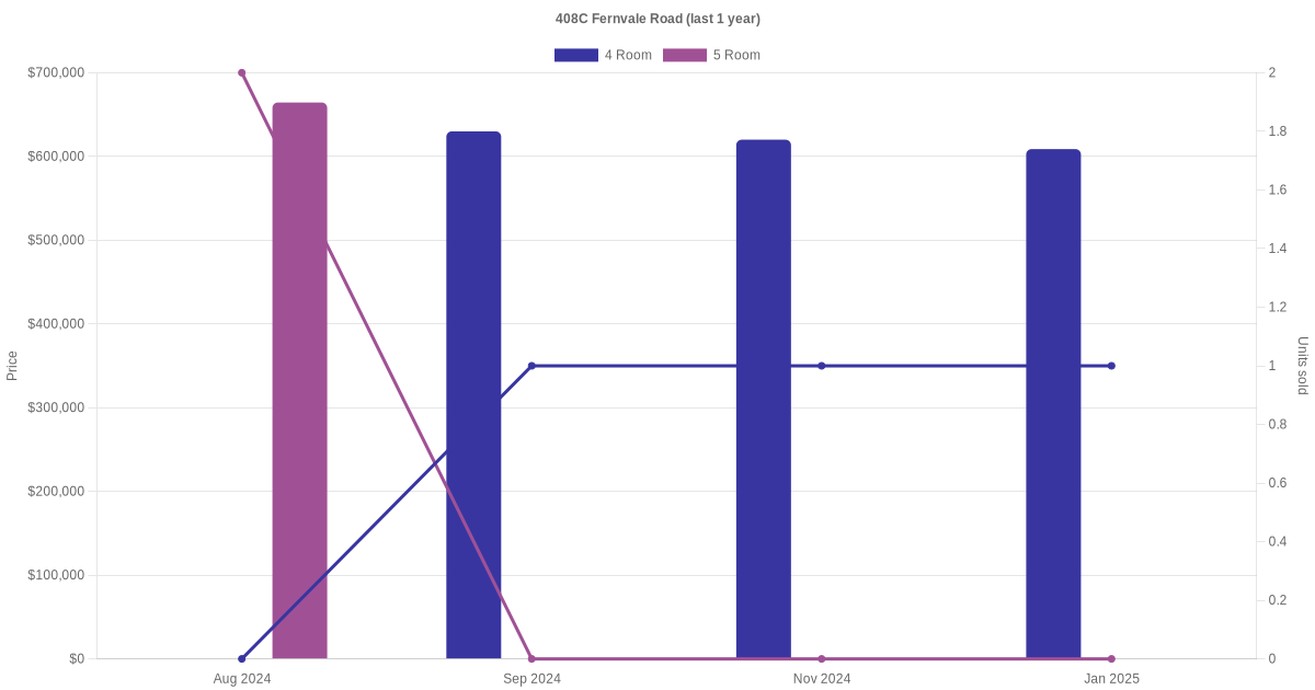 Here's a summary of the rental transactions and price trends for the 4 room and 5 room units at 408C Fernvale Road.