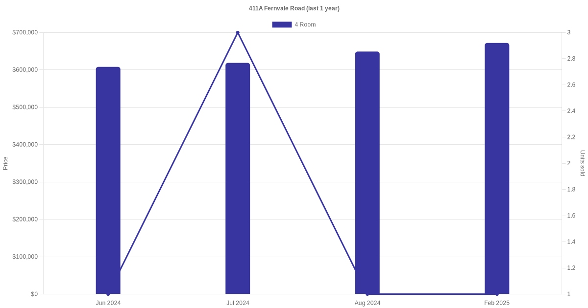 Below is a quick summary of the resale transactions volume and average price trends for the 4 room units at 411A Fernvale Road.
