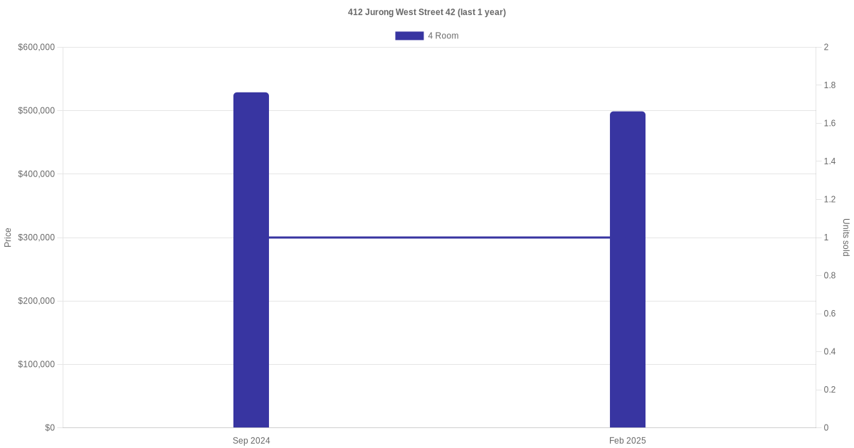 | Aug 2025 | $4,300 | 4 Room | Blk 412 Jurong West Street 42 4 Room | Jurong West |
