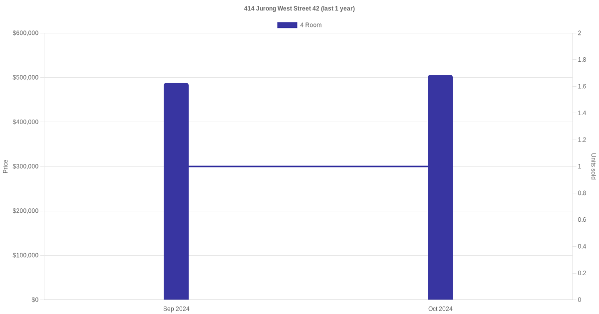 | Nov 2024 | $4,000 | 4 Room | Blk 414 Jurong West Street 42 4 Room | Jurong West |