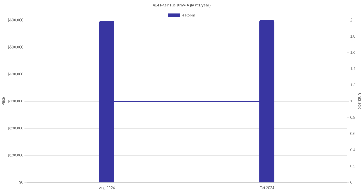 There were a total of 4 resale transactions in the last 3 years for units in block 414 Pasir Ris Drive 6, with the latest one recorded in Oct 2025.