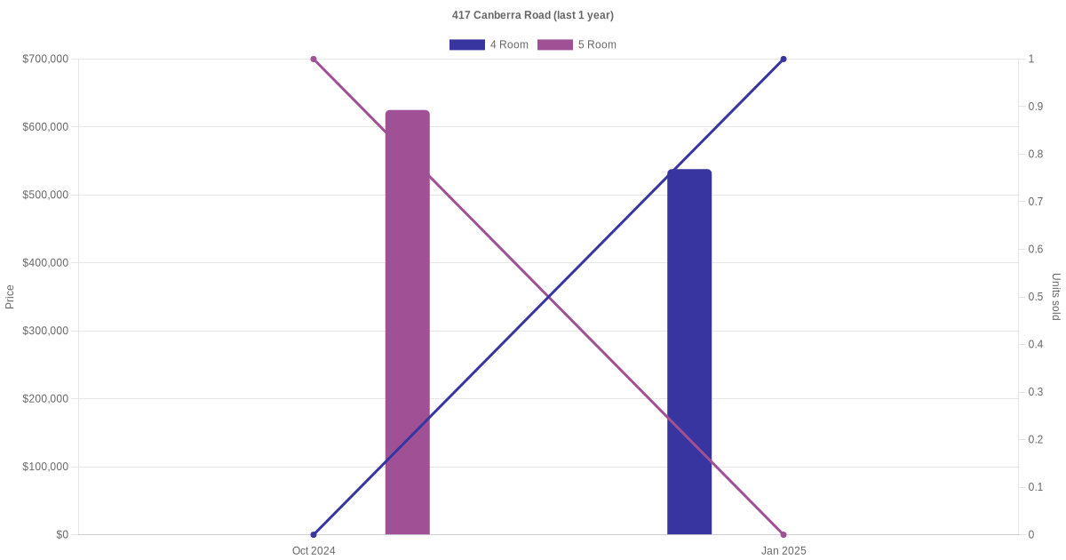 Here's a summary of the rental transactions and price trends for the 4 room and 5 room units at 417 Canberra Road.