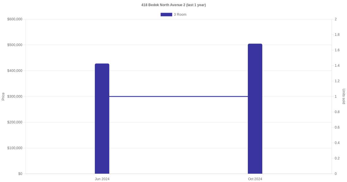 | Oct 2024 | $3,000 | 3 Room | Blk 418 Bedok North Avenue 2 3 Room | Bedok |