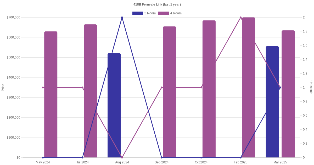 Here's a summary of the rental transactions and price trends for the 2 room, 3 room and 4 room units at 418B Fernvale Link.