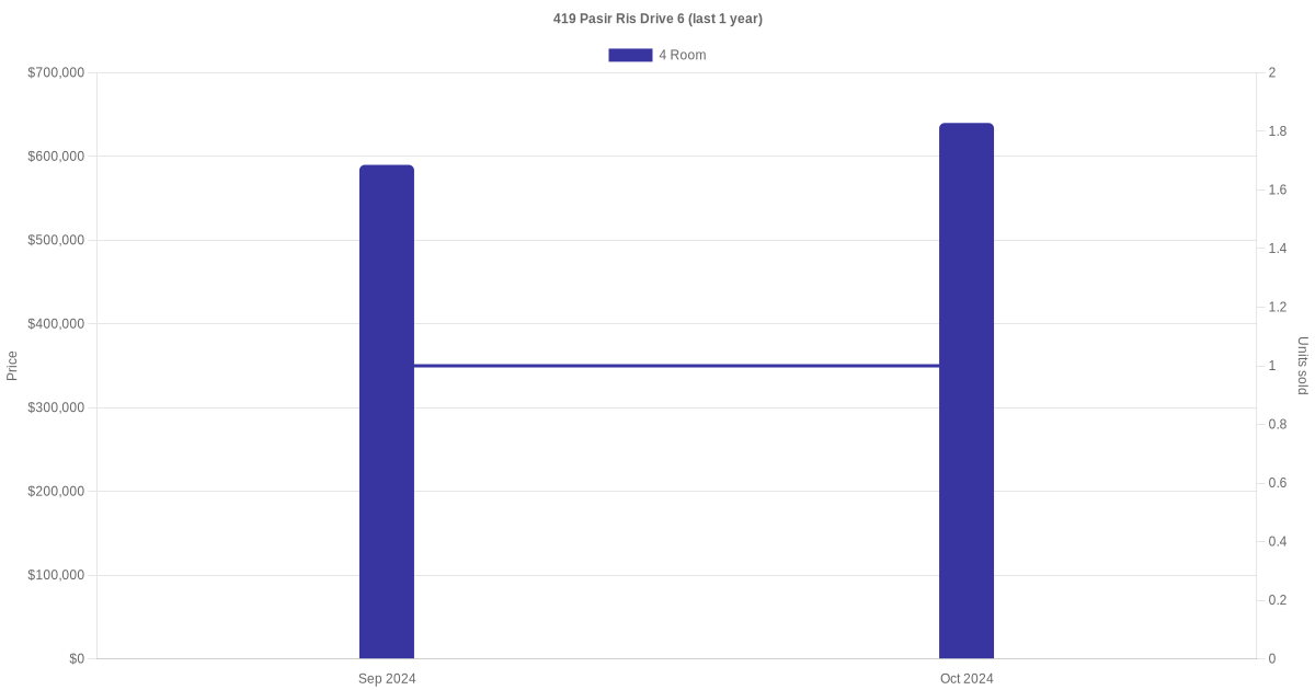 There were a total of 5 resale transactions in the last 3 years for units in block 419 Pasir Ris Drive 6, with the latest one recorded in Oct 2024.